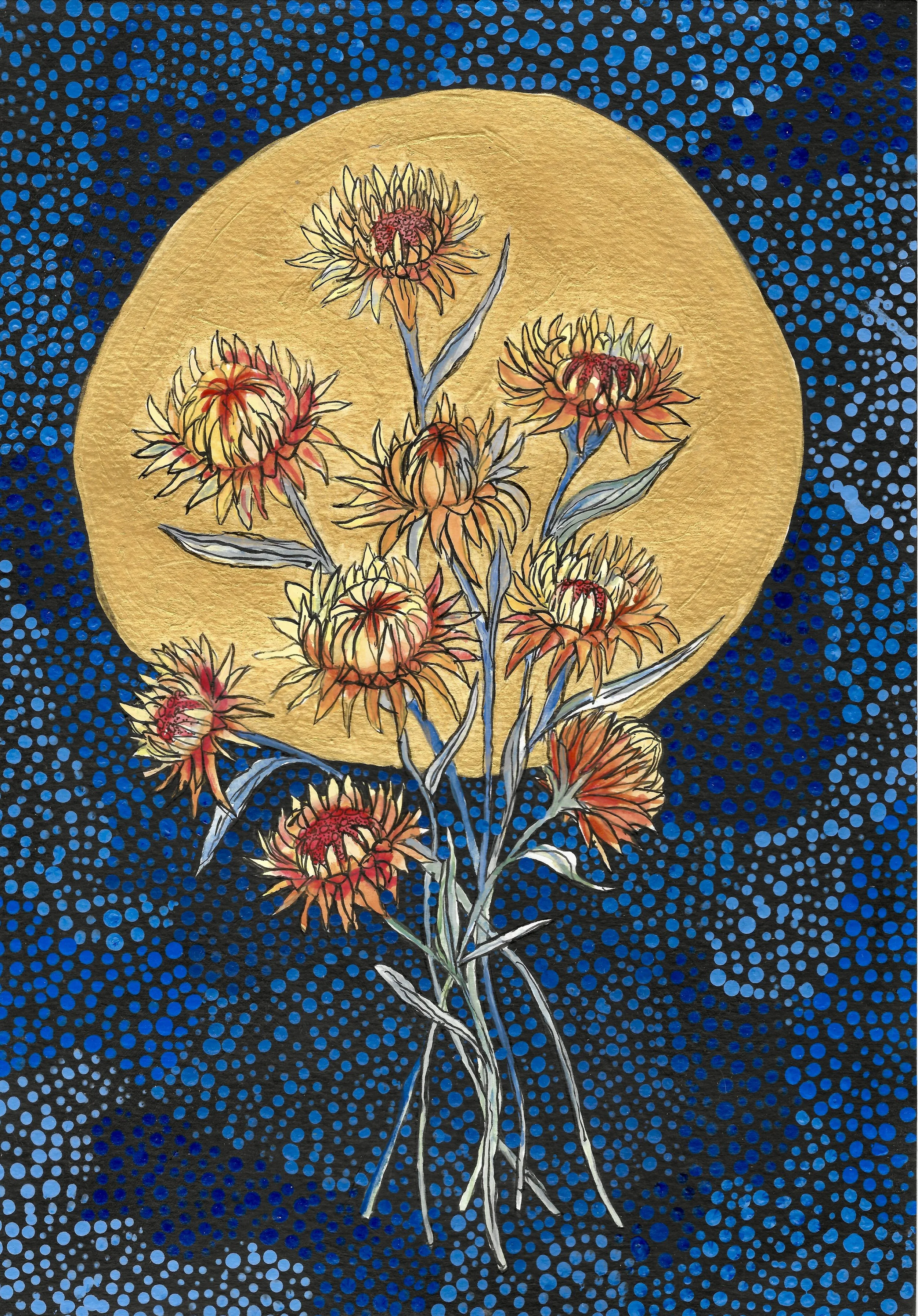 The pieces "‘The Watchers’ and ‘The Honeyeater’ were created for the ‘Emergence Exhibitions’ curated by Lily Power, a beautiful night for local Northern Beaches artists to showcase and sell their pieces whilst forming connections within the community.