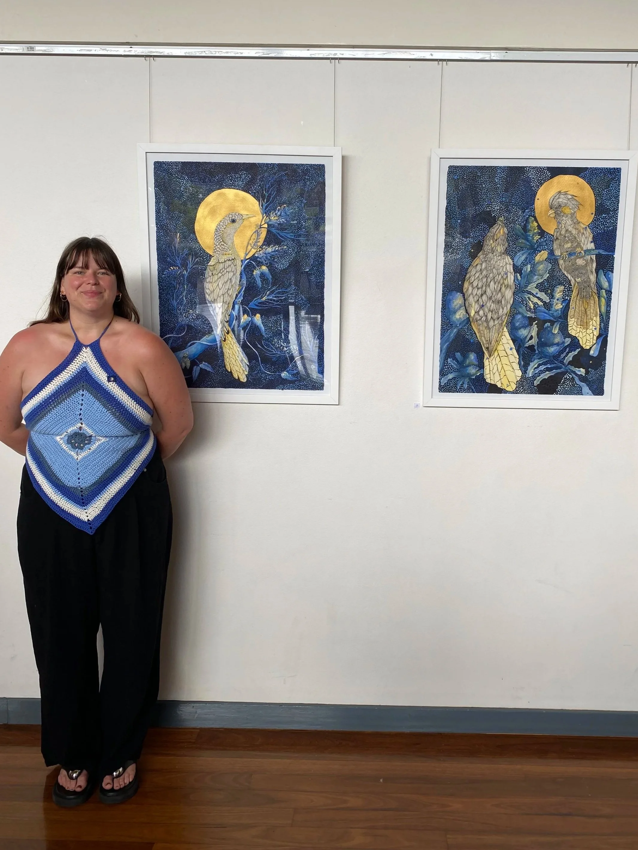 Hosted at the Newport Community Centre on October the 25th, ‘In Reverence Of Magic’ was an incredibly successful night in which Ingham exhibited her multimedia pieces ‘The Watchers’ (right) and ‘The Honeyeater’ (left).
